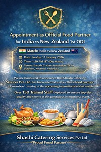 The company will provide its first hospitality service for the historic India vs New Zealand first One Day International cricket match, scheduled to be held on Sunday, January 11, at 1:30 pm (IST) at the Baroda Cricket Association (BCA) Stadium, Kotambi, Vadodara. Expressing pride in contributing to such a prestigious sporting event, Shashidhar B. Shetty, Chairman and Managing Director of Shashi Catering Services Pvt. Ltd. (SCSPL), said the organization is fully prepared to ensure the success of the tournament.