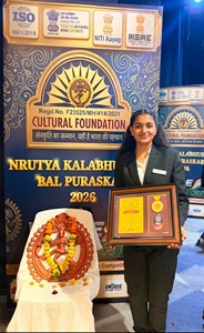 ಮುಂಬಯಿ (ನಾಸಿಕ್), ಎ.೨೭: ಇಲ್ಲಿನ ಧ್ರುವ ಗ್ಲೋಬಲ್ ಶಾಲೆಯ ವಿದ್ಯಾರ್ಥಿನಿಯರಾದ ಯಶೋಧರ ಲಕ್ಷ್ಮೀಕಾಂತ ನಾಯಿಕವಾಡಿ ಮತ್ತು ಆರಾಧ್ಯ ಜನಾರ್ದನ ಪೂಜಾರಿ ನೃತ್ಯ ಕ್ಷೇತ್ರದಲ್ಲಿ ಯಶಸ್ಸನ್ನು ಸಾಧಿಸಿದ್ದಕ್ಕಾಗಿ ರಾಷ್ಟ್ರೀಯ ಮಟ್ಟದ ಪ್ರತಿಷ್ಠಿತ ‘ನೃತ್ಯಕಲಾ ಭೂಷಣ ಬಾಲ ಪ್ರಶಸ್ತಿ ೨೦೨೬’ ಕ್ಕೆ ಭಾಜನರಾಗಿದ್ದಾರೆ.