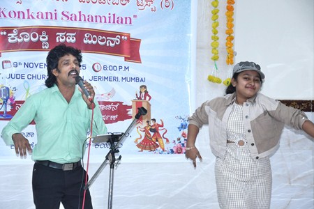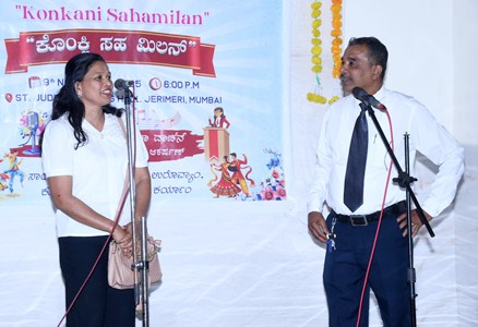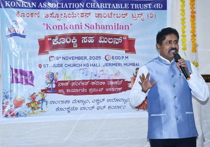Mumbai, Nov.09: The Konkani Association Charitable Trust (KACT) celebrated the Konkani Sahamilan on Sunday evening at the St Jude School Auditorium, Jerimeri, Kurla West. The simple gathering, held under the leadership of KACT President Leo Fernandes Jerimeri, was graced by the chief guest Rev. Fr. Nelson Saldanha, Parish Priest of Our Lady of the Rosary Church, Goregaon West, who delivered his message on the occasion.