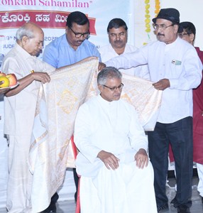 As guests of honour, senior theatre artiste Francis Fernandes Cassia, Divo Konkani weekly editor Lawrence Coelho, KACT Vice President Walter D’Souza Kalmadi, Treasurer Pritesh Castelino, Joint Secretary Vincent Castelino, Executive Committee members Cyril Castelino, Manuel P. Fernandes and Levin L. Fernandes were present on stage. On the joyous occasion of Rev. Fr Nelson Saldanha completing his Silver Jubilee of priesthood, he was felicitated and honored on behalf of the Trust.
