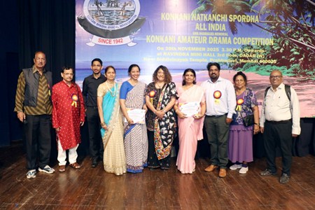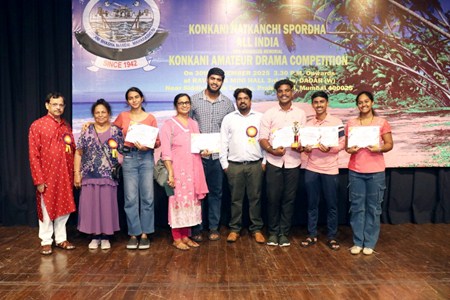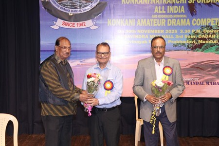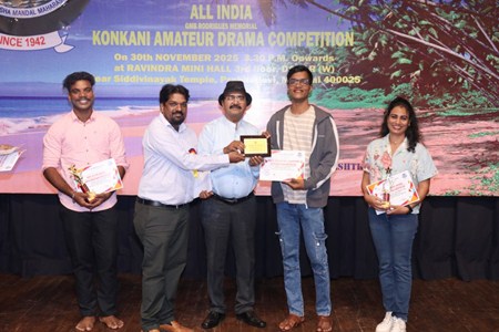 Mumbai, Nov 30: Konkani Bhasha Mandal Maharashtra, one of Mumbai’s oldest and most reputed Konkani organizations, successfully organized the GMB Rodrigues Memorial All India Amateur Konkani Drama Competition on November 30, 2025, at Ravindra Natya Mandir Mini Hall, Behind Siddhivinayak Temple, Prabhadevi, Mumbai.
