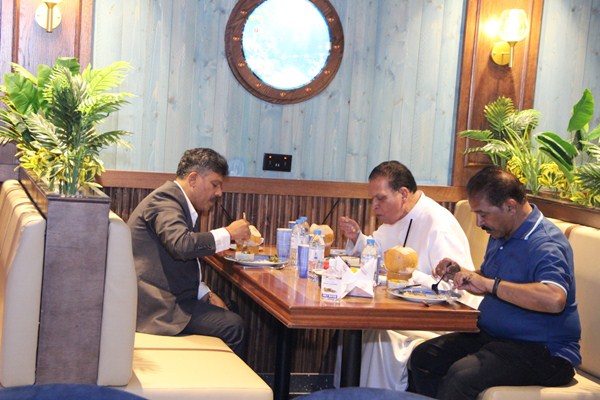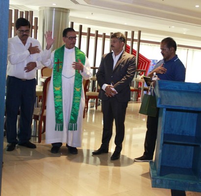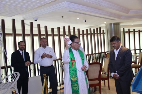 Following the blessing ceremony, Fr. Michael shared the restaurant’s very first meal alongside Mr. Praveen Shetty, Chairman of the Fortune Group of Hotels, in a quiet moment of reflection and celebration. The two were joined by members of the restaurant’s leadership and staff for this inaugural meal, symbolizing unity and shared vision.