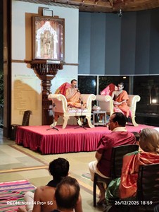 ಪ್ರವಚನದ ಪ್ರಥಮ ದಿನವಾದ ರವಿವಾರ 21.12.2025 ರಂದು ಗೋಕುಲಕ್ಕೆ ಆಗಮಿಸಿದ ಯತಿದ್ವಯರನ್ನು ಗೋಪಾಲಕೃಷ್ಣ ಪಬ್ಲಿಕ್ ಟ್ರಸ್ಟ್ ವಿಶ್ವಸ್ಥ ಮಂಡಳಿ ಮತ್ತು ಬಿ. ಎಸ್.ಕೆ.ಬಿ. ಎಸೋಸಿಯೇಶನ್ ಪದಾಧಿಕಾರಿಗಳು ಪೂರ್ಣಕುಂಭದೊಂದಿಗೆ ಸ್ವಾಗತಿಸಿ ದೇವಾಲಯಕ್ಕೆ ಕರೆತಂದರು. ಶ್ರೀ ಗೋಪಾಲಕೃಷ್ಣನಿಗೆ ಆರತಿ ಬೆಳಗಿ ವೇದಿಕೆಗೆ ಆಗಮಿಸಿದ ಯತಿದ್ವಯರನ್ನು ಅಧ್ಯಕ್ಷ ಡಾ. ಸುರೇಶ್ ರಾವ್, ಭಕ್ತಿ ಪೂರ್ವಕ ವಾಗಿ ಸ್ವಾಗತಿಸುತ್ತಾ, ರಾಮಾಯಣದ ಸುಂದರಕಾಂಡದ ರಸಾಮೃತವನ್ನು ಭಕ್ತಾದಿಗಳಿಗೆ ವರ್ಣಿಸಿ ಪುನೀತರನ್ನಾಗಿಸಬೇಕೆಂದು ಪ್ರಾರ್ಥಿಸಿ ದರು. ಮುಲುಂಡ್ ಸತ್ಯಧ್ಯಾನ ಪೀಠದ ಕುಲಪತಿಗಳಾದ ವಿದ್ವಾನ್ ಮಾಹುಲಿ ವಿದ್ಯಾಸಿಂಹ ಆಚಾರ್ಯರು ಪ್ರಾಸ್ತಾವಿಕ ನುಡಿಗಳನ್ನಾಡಿದರು. ಪ್ರತಿದಿನವೂ ಕಿರಿಯ ಸ್ವಾಮಿಗಳು ನೀತಿಕಥೆಗಳನ್ನು ಪೌರಾಣಿಕ ಕತೆ, ಉದಾಹರಣೆಗಳೊಂದಿಗೆ ಭಕ್ತಾದಿಗಳಿಗೆ ತಿಳಿಸಿದರು. ಶ್ರೀ ಶ್ರೀಯವರು ಪ್ರಥಮ ದಿನದಲ್ಲಿ ರಾಮಾಯಣದ ಮೊದಲಿನ ನಾಲ್ಕು ಕಾಂಡಗಳ ಬಗ್ಗೆ ಮಾತನಾಡಿ ನಂತರ ಏಳು ದಿನಗಳ ಕಾಲ ಐದನೆಯ ಕಾಂಡವಾದ ಸುಂದರ ಕಾಂಡದ ಸಾರಾಮೃತವನ್ನು ಅದ್ಭುತವಾಗಿ ವರ್ಣರಂಜಿತವಾಗಿ ಮನಮುಟ್ಟುವಂತೆ ಪ್ರವಚನ ಗೈದರು.