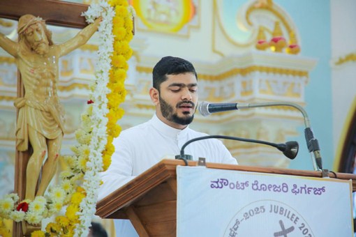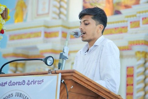 Over the past decade, Godwin Mascarenhas has rendered selfless service in YCS and ICYM at Mount Rosary Church, Kallianpur Varado, and the Udupi Diocese in various capacities, including President and Secretary. In his short response, he gratefully acknowledged the encouragement and support of his parents, sister, past and present parish priests, assistant priests, animators, and parishioners who shaped his leadership journey.